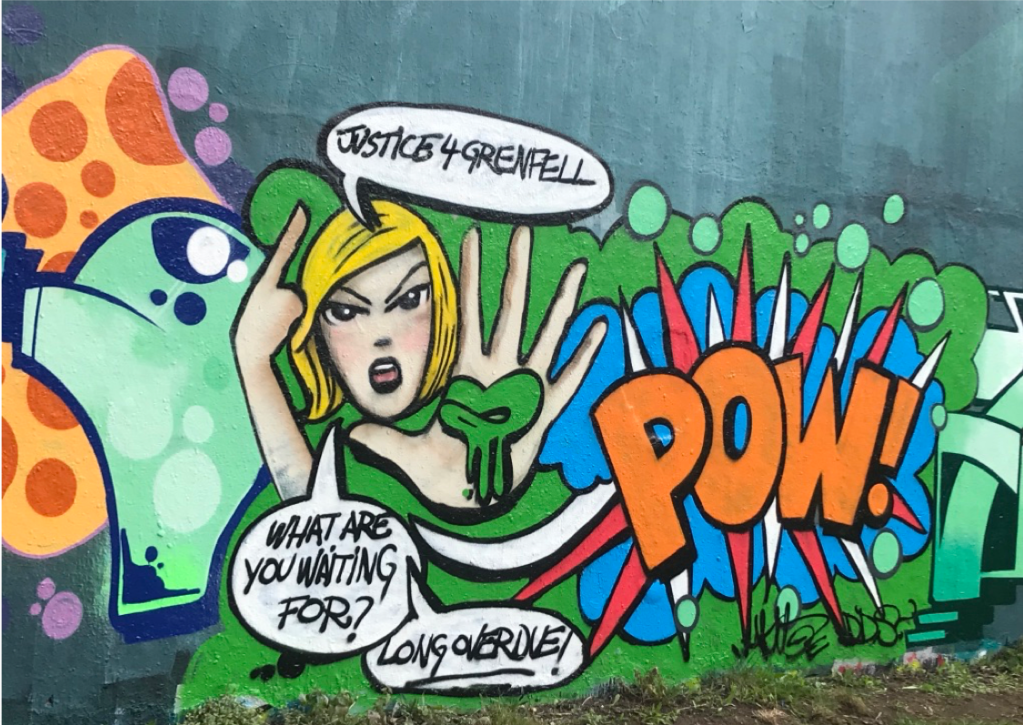I normally post more academic articles but as we mark the second anniversary of the Grenfell Tower Fire, I thought I’d post about the community and use of art as a form of protest. It’s symbolic of what makes North Kensington so unique (and why I love living here).