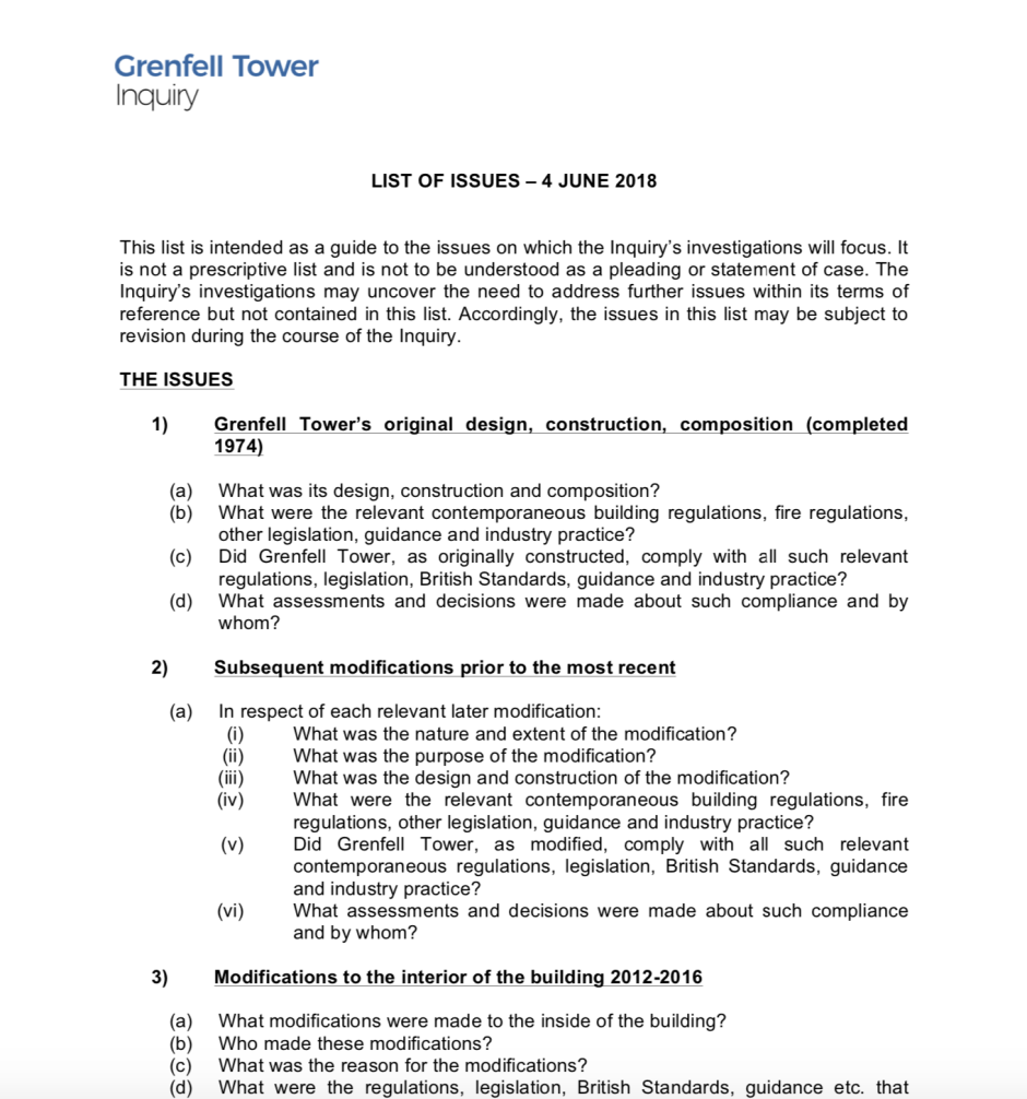 - The Grenfell Inquiry: Terms of Reference and Issues to be addressed