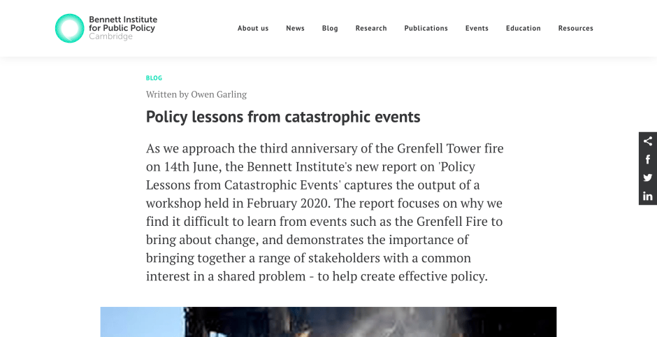 Policy lessons from catastrophic events: Bennett Institute Report